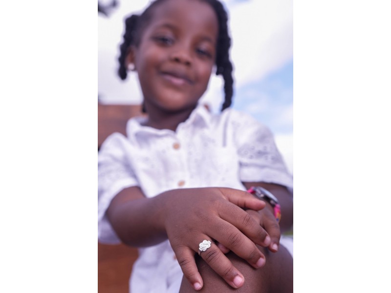 Deze zilveren Surinaamse mattenklopper ring voor een baby/peueter of kleuter heeft een stijlvol Surinaams design met een goede oog voor de details. Deze Surinaamse mattenklopper ring heeft een culturele betekenis.