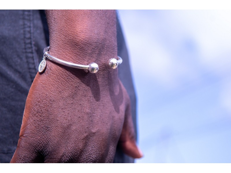 Deze massieve zilveren Surinaamse boei met afoe sensi munt van Fokko Design heeft een stijlvol Surinaams design met een goede oog voor de details. Deze zilveren Surinaamse boei heeft een culturele betekenis.